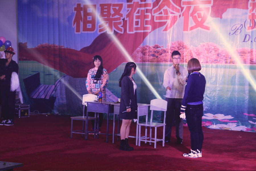 “相聚在今夜,数学更辉煌”迎新晚会是由数统院本科生,研究生和老师们精心筹备的19个节目参演,中间插入了游戏环节和捐款环节。晚会在校文联的开场舞《鼓舞东油》中徐徐拉开帷幕。以幽默诙谐的语句,热闹喧天的锣鼓奏响的《数学赞》,道出了学生们对数统院这个大家庭的心声;轻快灵动的歌声,饱含深情的歌唱,《北京东路的日子》更是流露了同学们对校园生活的眷恋,展现了青春的欢乐与美好;陈思璐老师演奏的《丝路驼铃》,悠扬动听,如甘泉般滋润了每个人的心田。