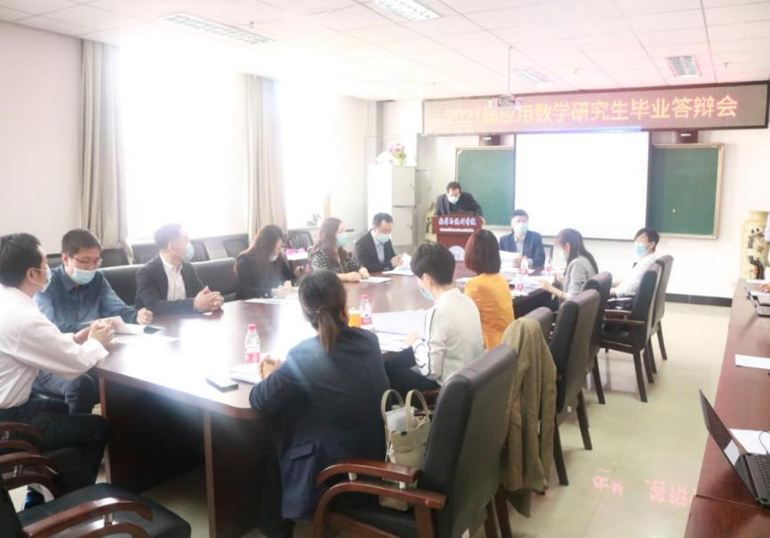 2021年5月30日上午,allwincity万象城2021届硕士研究生毕业论文答辩会在第一教学楼三楼会议室举行。此次会议学院高度重视,由王玉学院长担任答辩领导组组长,领导应用数学研究生毕业答辩的全部工作。研究生部的领导对本次答辩亦是非常重视,由赵立新主任亲自带队指导万象城研究生的毕业答辩。整个答辩过程规范、严谨、流畅,充分显示了答辩会的学术性、严谨性和公正性。