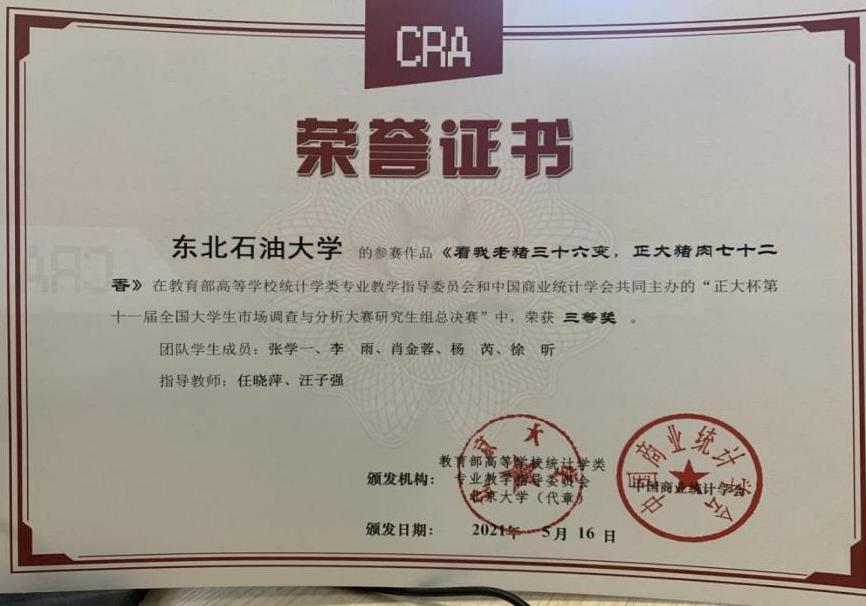万象城研究生获得“正大杯”第十一届全国大学生市场调查与分析大赛全国三等奖