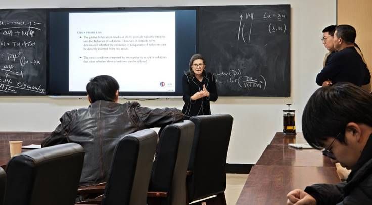 在随后的互动环节,教师们和研究生们积极提问,就报告中的关键概念、研究方法以及潜在拓展领域,特别是关于Patrizia Pucci教授所研究问题的分歧性结果进行了深入讨论。Patrizia Pucci教授耐心解答,现场学术氛围浓厚,讨论持续良久,充分体现了师生对前沿研究的热情和参与度。