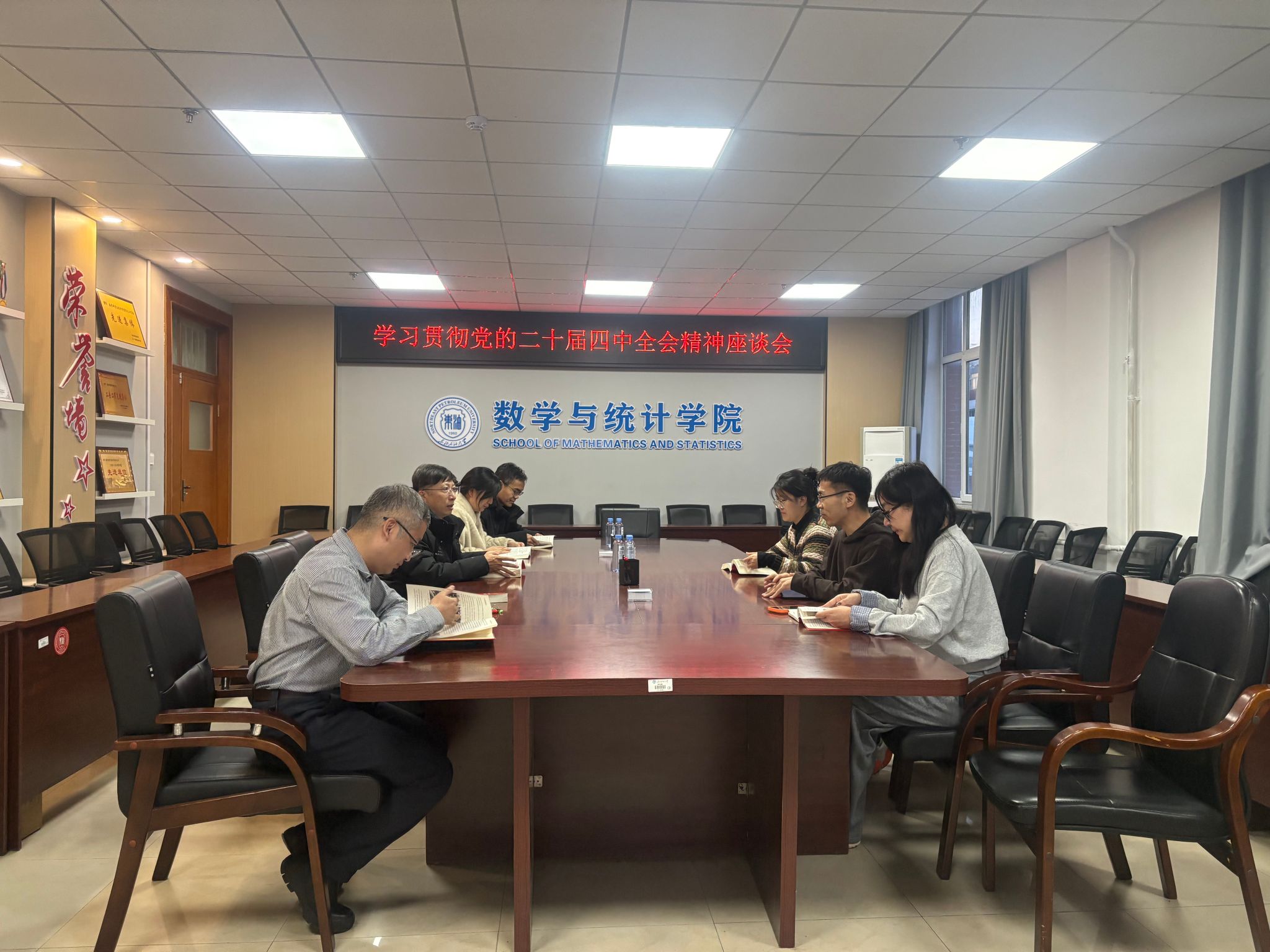 学院党委书记杨云峰领学了全会核心要义,重点解读了全会关于统筹教育强国、科技强国、人才强国建设的战略部署,强调要立足学院学科特色,找准服务新质生产力发展的切入点。强调党的二十届四中全会为“十五五”时期教育科技发展指明了方向,学院必须立足学科特色,主动从自身发展“小逻辑”融入国家现代化建设“大逻辑”,找准服务国家战略和区域发展的切入点。在交流研讨环节,与会师生结合自身工作学习实际各抒己见。大学数学教学部刘日成主任谈到,要强化基础研究与原始创新能力,将全会精神融入课程体系重构;青年教师代表杨柠赫表示,将以科研攻关为抓手,推动科技创新与产业创新深度融合。大家一致达成共识,要把全会精神转化为教学科研的具体行动,强化数理基础研究与应用创新的深度融合,为关键核心技术攻关提供数理支撑。